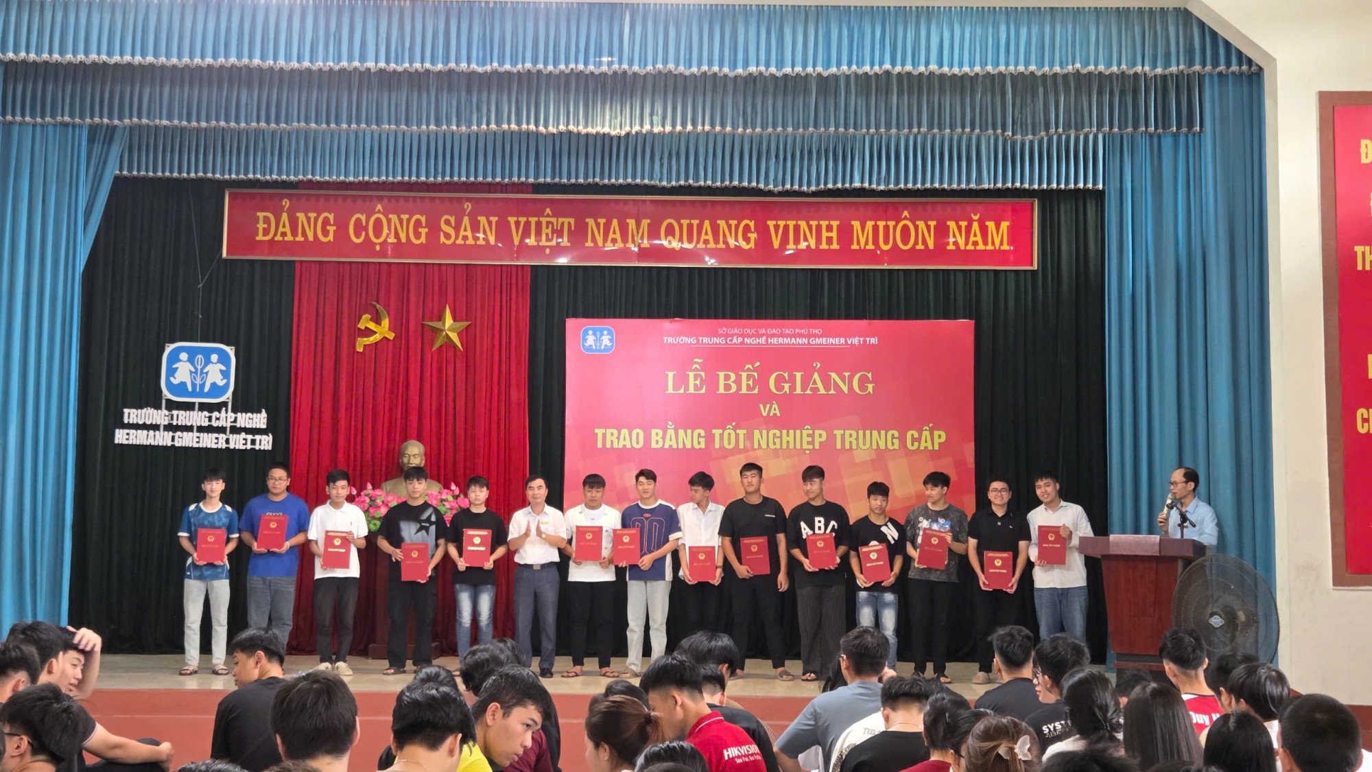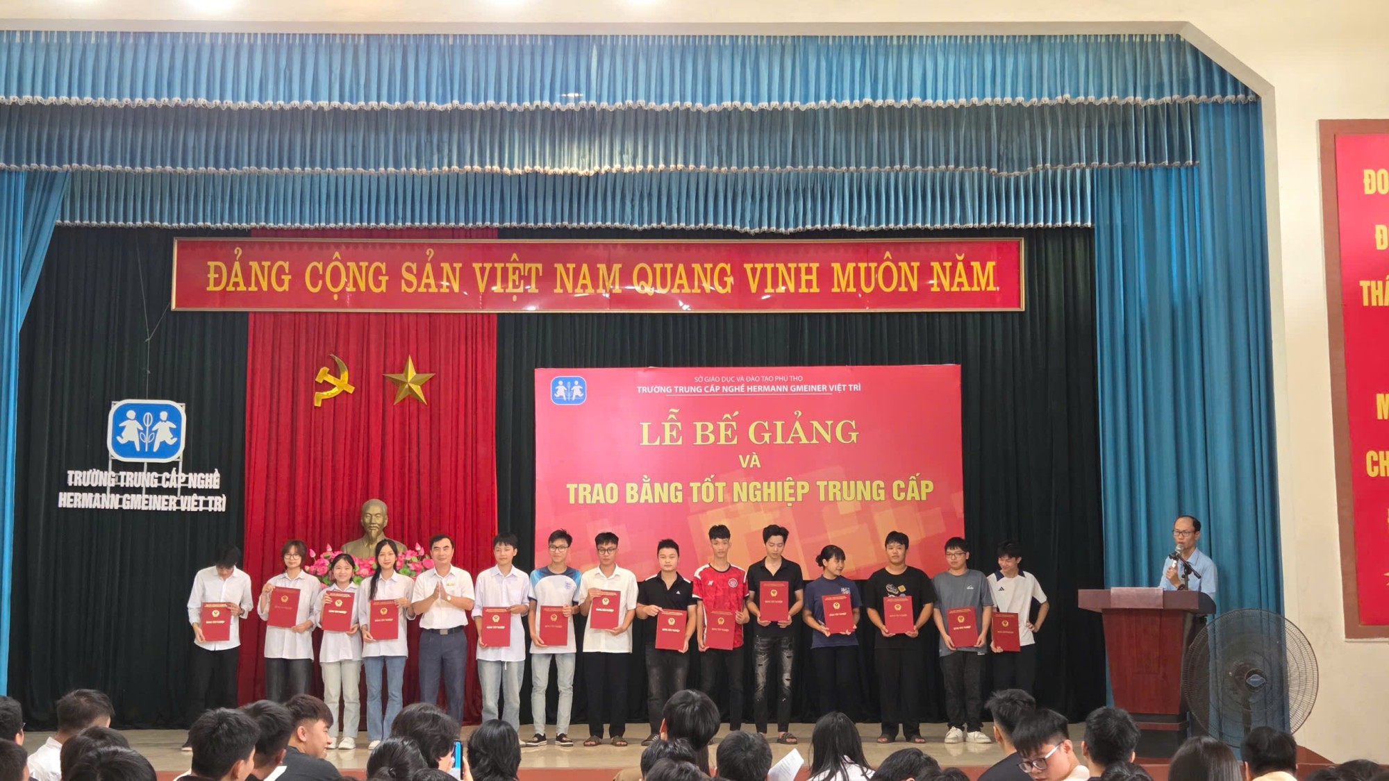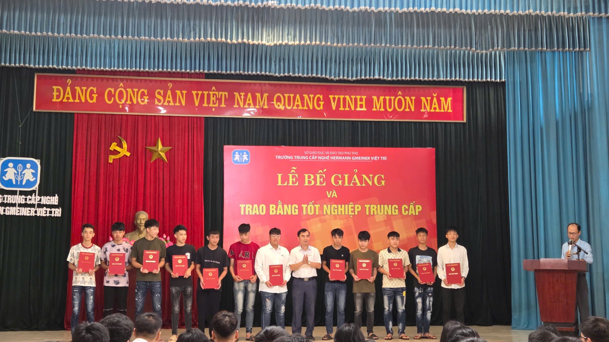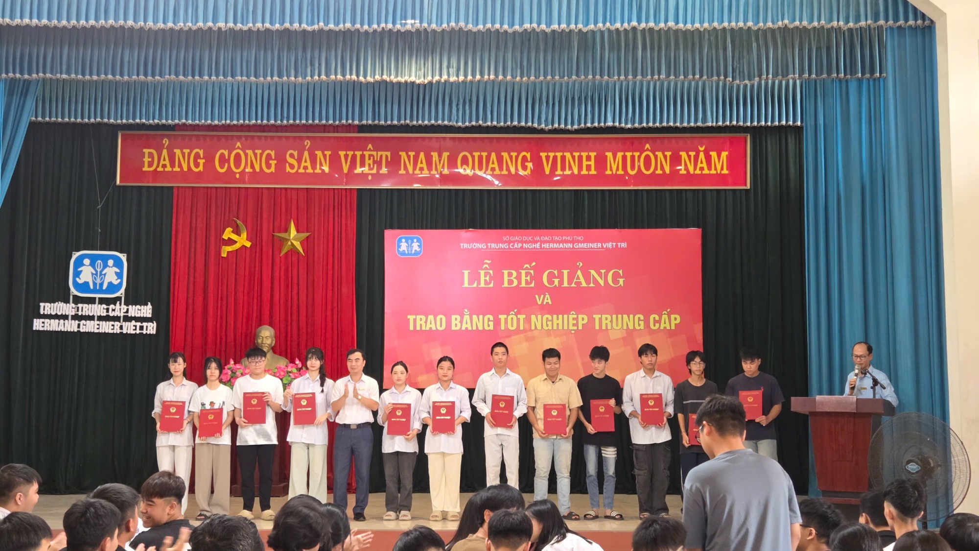 Ngày 03 tháng 10 năm 2025, Trường Trung cấp nghề Hermann Gmeiner Việt Trì đã long trọng tổ chức Lễ bế giảng và trao bằng tốt nghiệp cho học sinh trung cấp khóa 2023 – 2025. Đây là sự kiện quan trọng, đánh dấu bước trưởng thành và ghi nhận kết quả học tập, rèn luyện của các em học sinh trong suốt quá trình học tập tại trường.