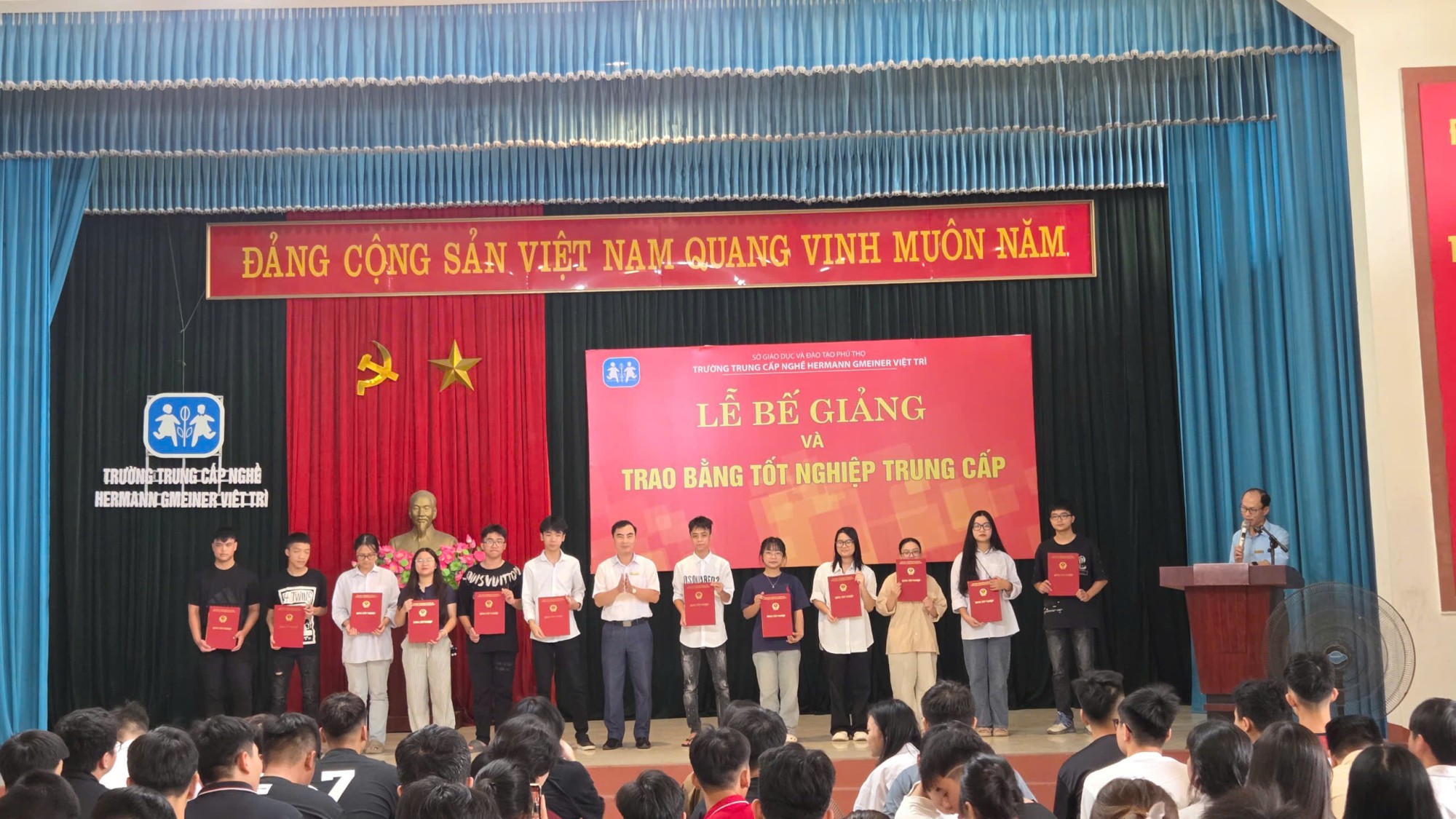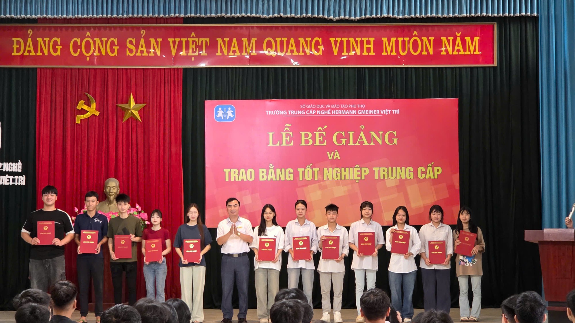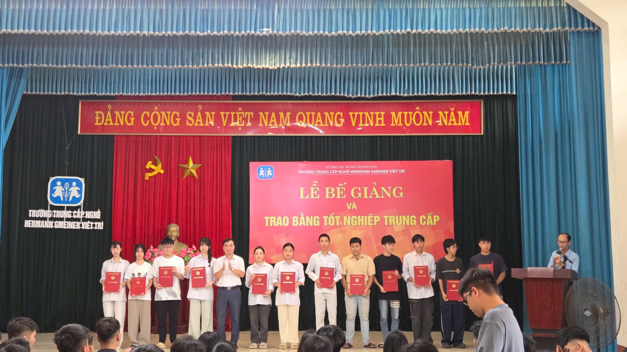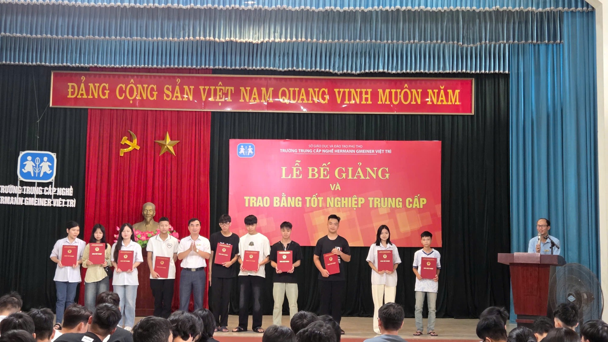 Ngày 03 tháng 10 năm 2025, Trường Trung cấp nghề Hermann Gmeiner Việt Trì đã long trọng tổ chức Lễ bế giảng và trao bằng tốt nghiệp cho học sinh trung cấp khóa 2023 – 2025. Đây là sự kiện quan trọng, đánh dấu bước trưởng thành và ghi nhận kết quả học tập, rèn luyện của các em học sinh trong suốt quá trình học tập tại trường.
