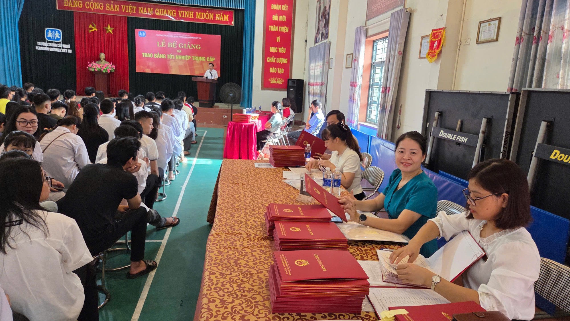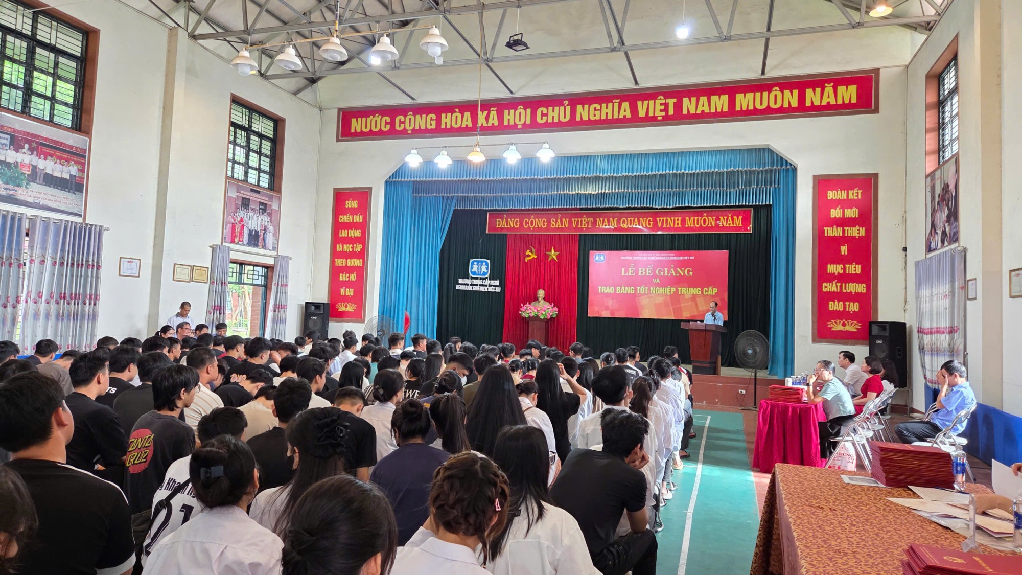 Buổi lễ diễn ra trong không khí trang trọng, ấm áp với sự tham dự của Ban giám hiệu, các thầy cô giáo, phụ huynh học sinh, cùng đại diện nhiều doanh nghiệp đối tác. Đặc biệt, ngay trong buổi lễ, các doanh nghiệp đã tham gia tuyển dụng, phỏng vấn trực tiếp, mang đến nhiều cơ hội việc làm, du học , XKLĐ cho học sinh sau khi tốt nghiệp.